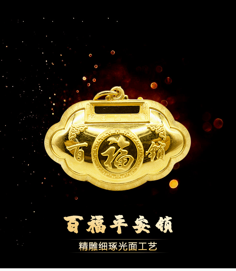 中冶黄金 足金百福锁平安锁黄金长命锁