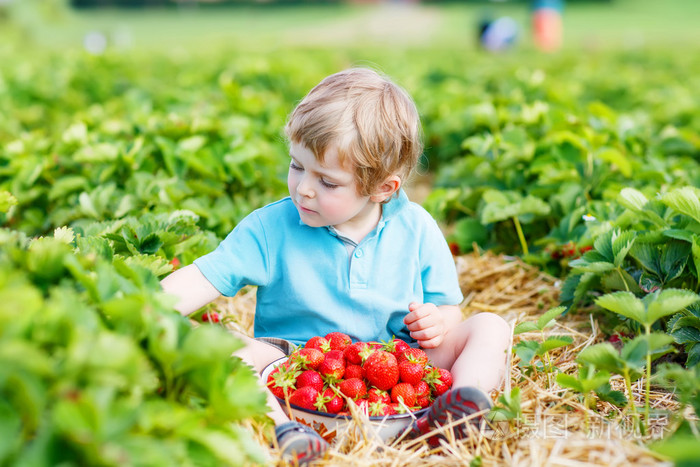 摘草莓农场,在户外的小小孩男孩