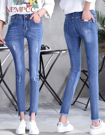 2018新款春季女式牛仔裤破洞猫须牛仔裤