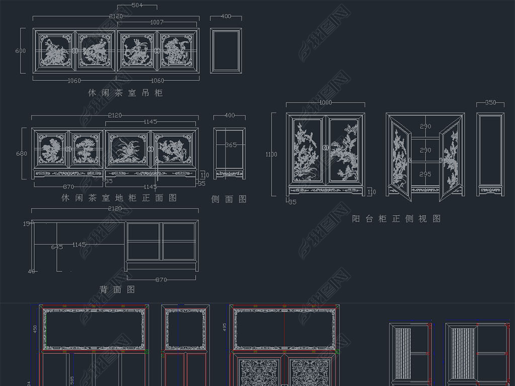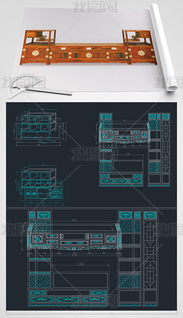 电视柜cad图库(红木家具厂深化拆单图纸)