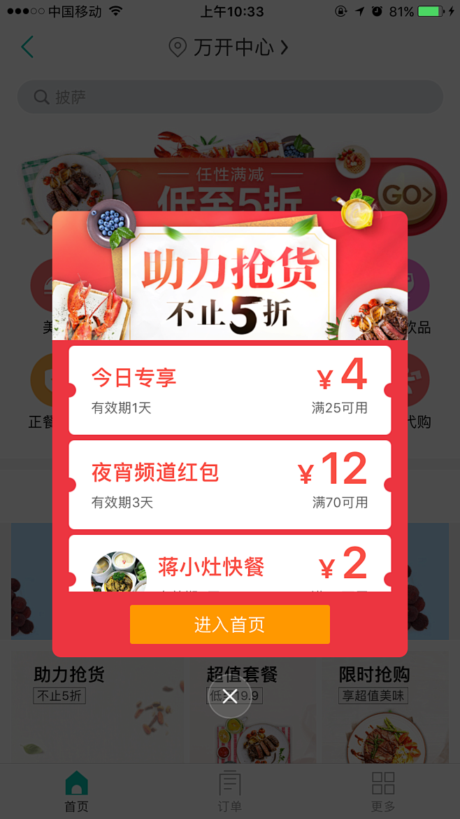 美团外卖优惠券弹窗