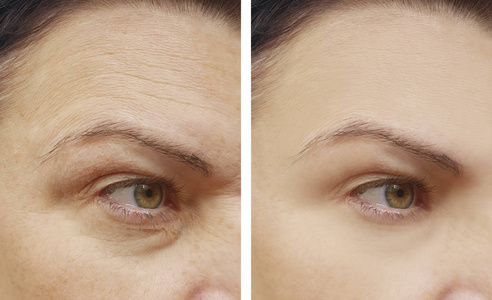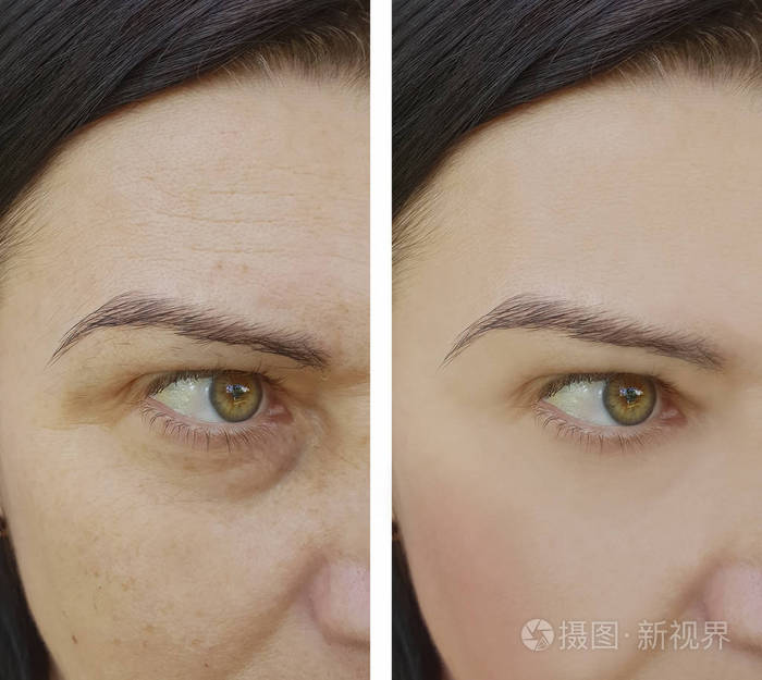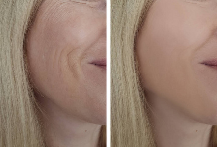 整容前后妇女脸上的皱纹