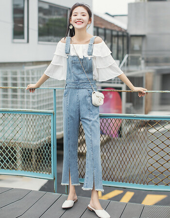 牛仔背带裤春秋女夏季2019韩版减龄宽松