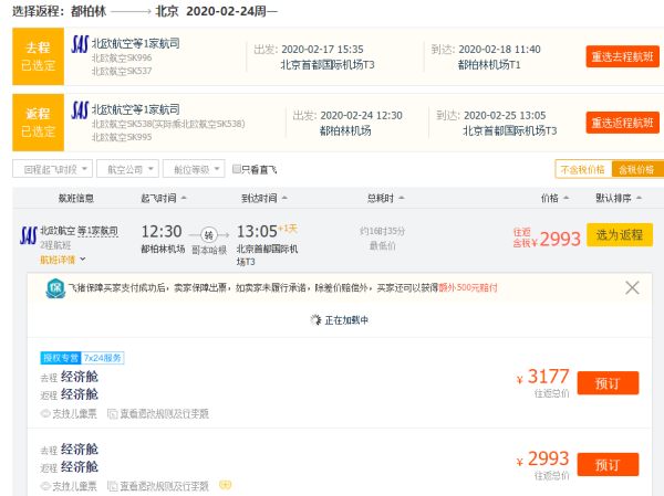 非青年票 北京-爱尔兰都柏林往返含税机票