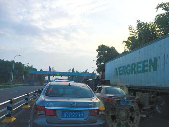 收费系统出问题 成自泸高速富顺站堵车2公里