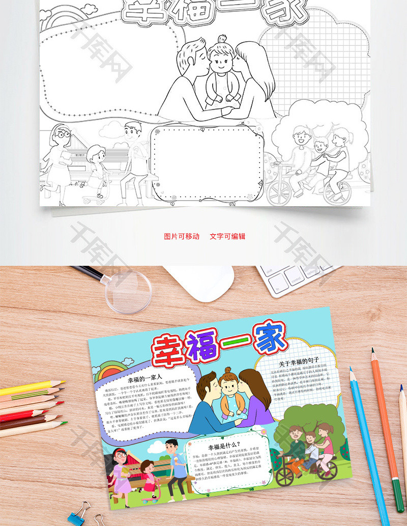 蓝色幸福一家小报word手抄报