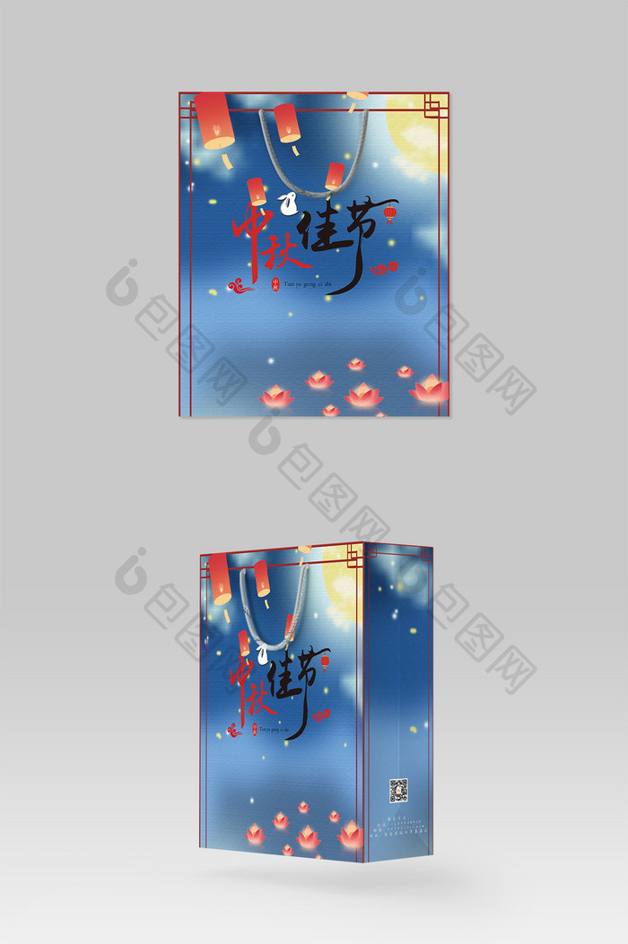 创意大气剪纸中国风中秋节礼盒包装手提袋
