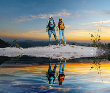 英俊的年轻男子旅游背包客画像上喜马拉雅