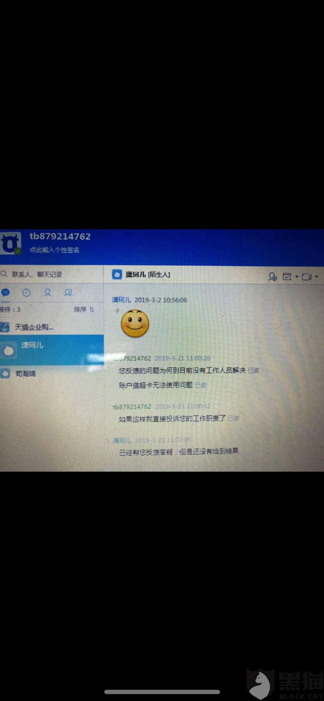 黑猫投诉:淘宝网冻结用户900元猫超卡不给