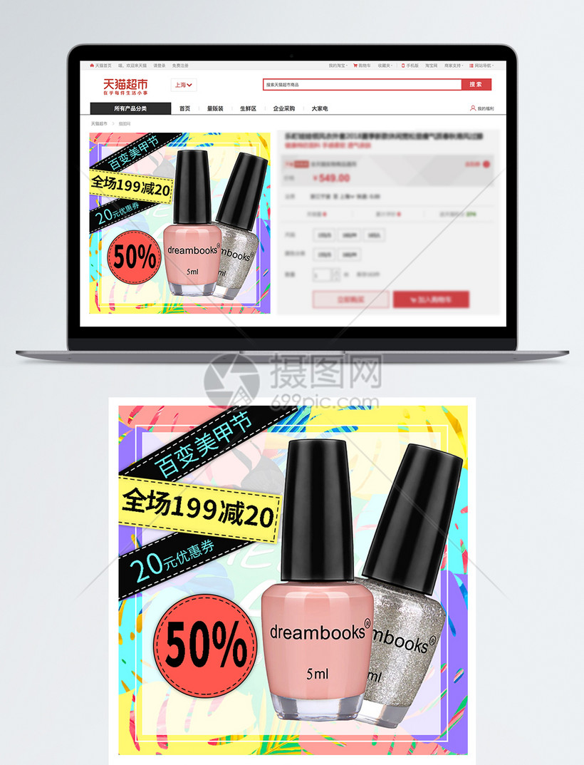 天猫淘宝指甲油详情页红色简约化妆品模板