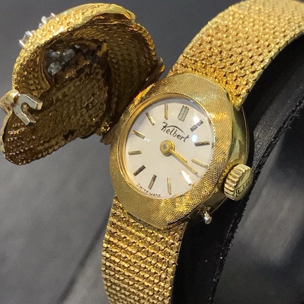 瑞士产14k金彩绘珐琅仕女游春图古董手表