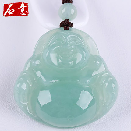 石意珠宝玉佛吊坠女款天然A货冰种翡翠佛公吊坠笑佛玉坠玉石挂件-tmall