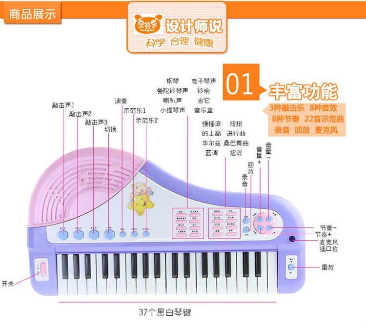 贝芬乐 88016 高级仿真电子琴 儿童音乐
