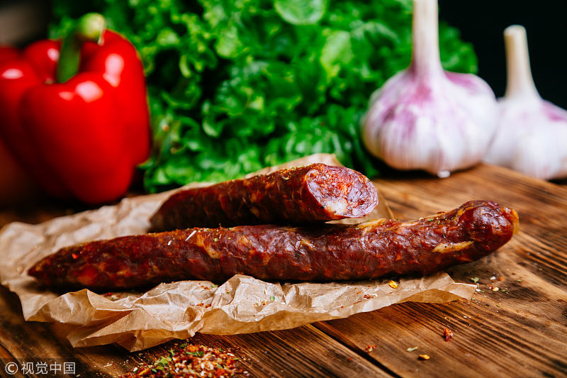 简介:香肠是一种利用非常古老的食物生产和肉食保存技术的食物,将动物的肉绞碎成条状,再灌入肠衣制成的长圆柱