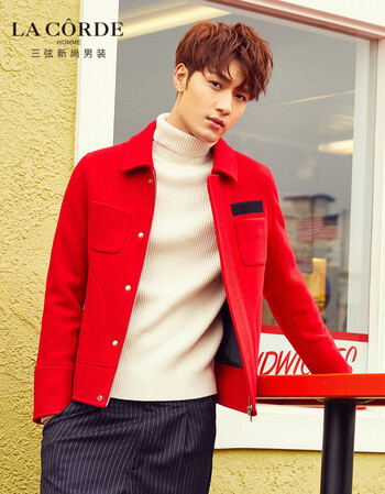 休闲翻领红色外套男青年韩版红色S【图片 .