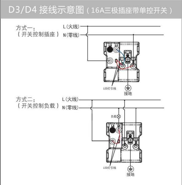 五孔一开插座接线图