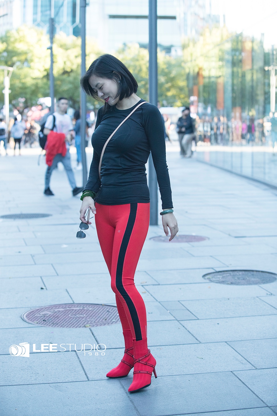 街拍;红色裤子配什么颜色上衣?搭配对颜色