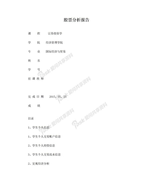 证券投资股票分析实验报告