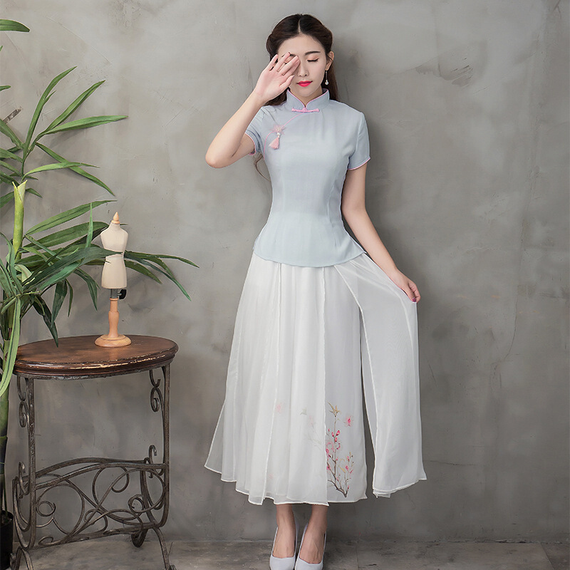 女装新款品牌热卖经典民国风女装旗袍套装中袖唐装女春夏改良时尚短款复古