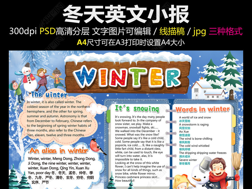 冬天小报英语内容