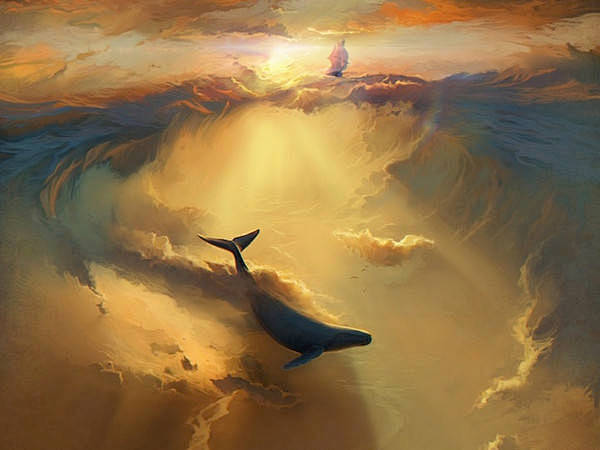 化身孤岛的鲸。(作者:俄罗斯插画师Artem Chebokha(RHADS))