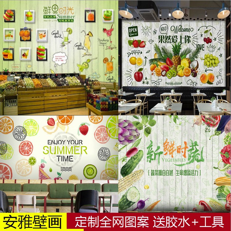 3D立体水果店蔬菜超市海报墙纸个性冷饮