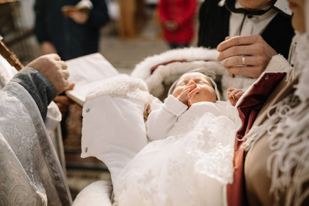 婴儿水洗礼仪式。在希腊基督教东正教洗礼