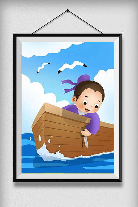 成语故事卡通插画刻舟求剑