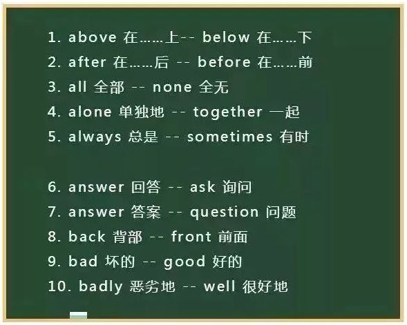 中文天信丨初中英语130组反义词,分类记忆