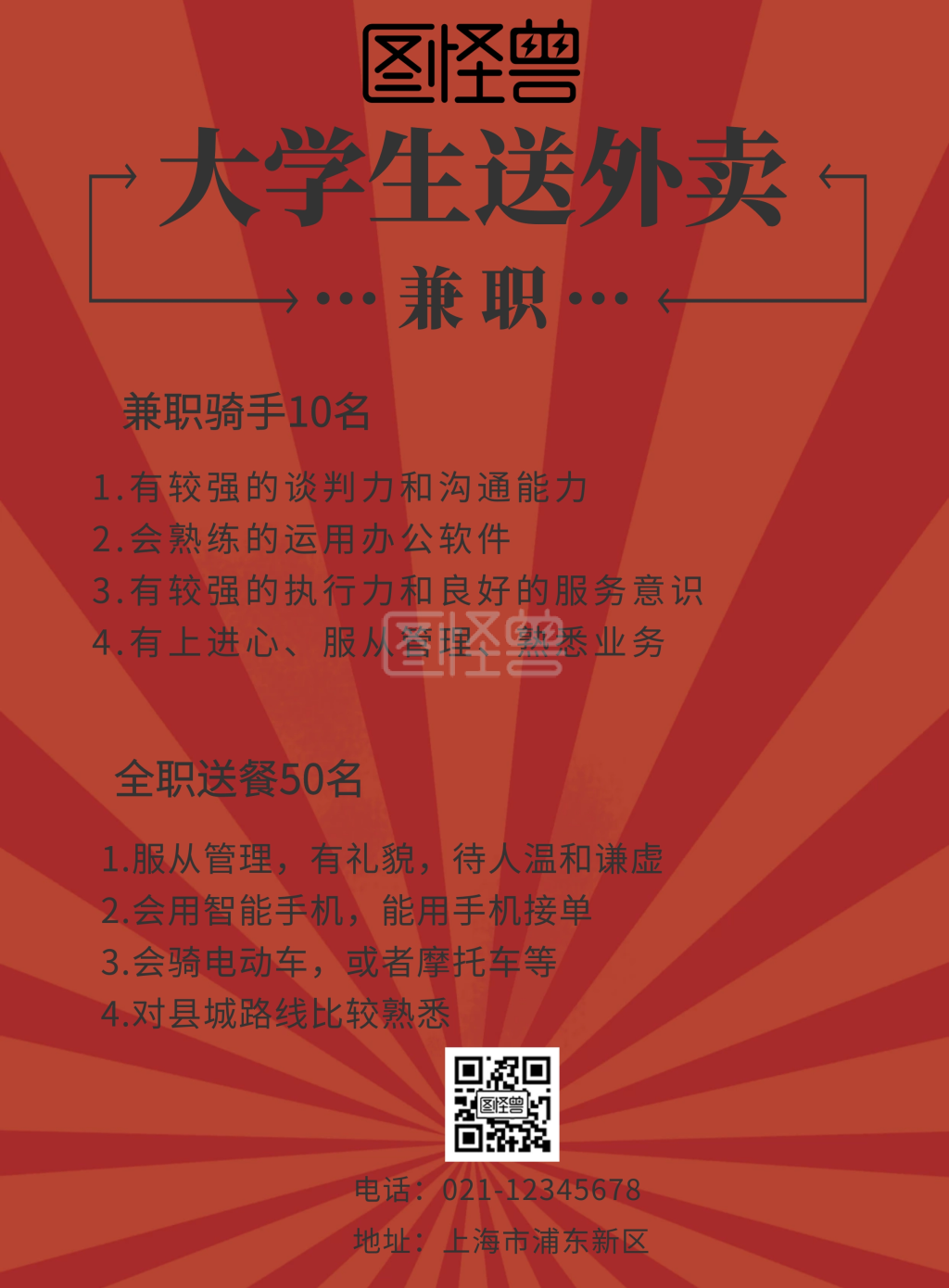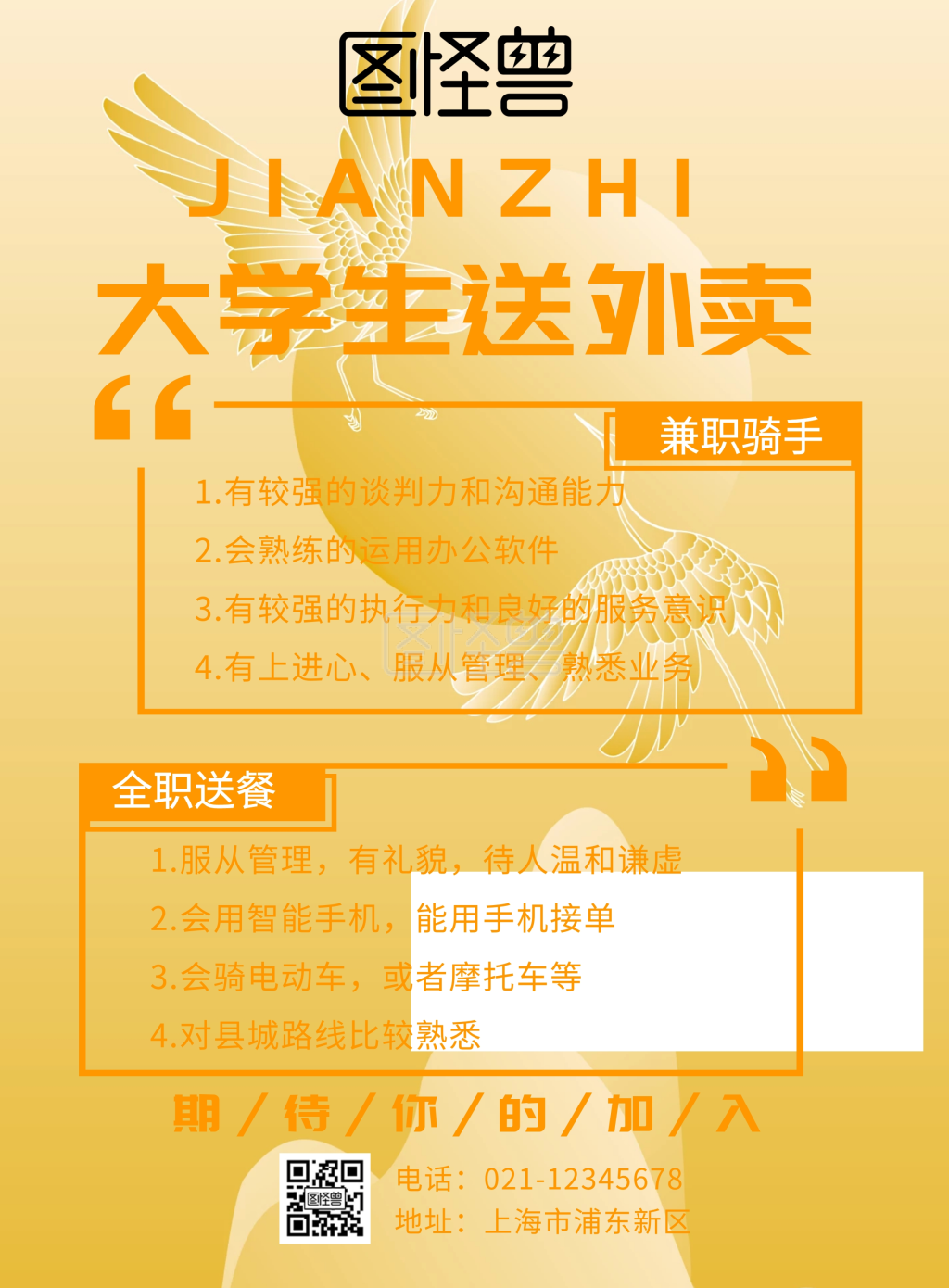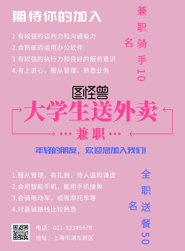 大学生送外卖兼职海报