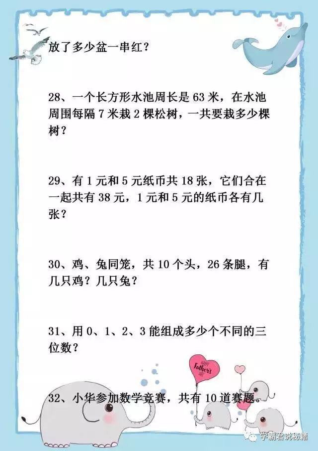 小学二年级上册60道奥数题含答案,题型都很棒,不认真及格都难