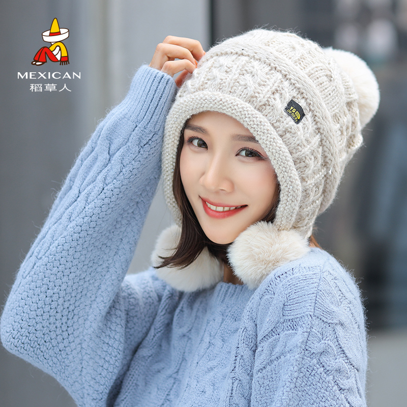 兔毛贝雷帽子冬季韩版毛线帽子女士冬天可爱女帽冬帽双层加厚B023 - 分享-