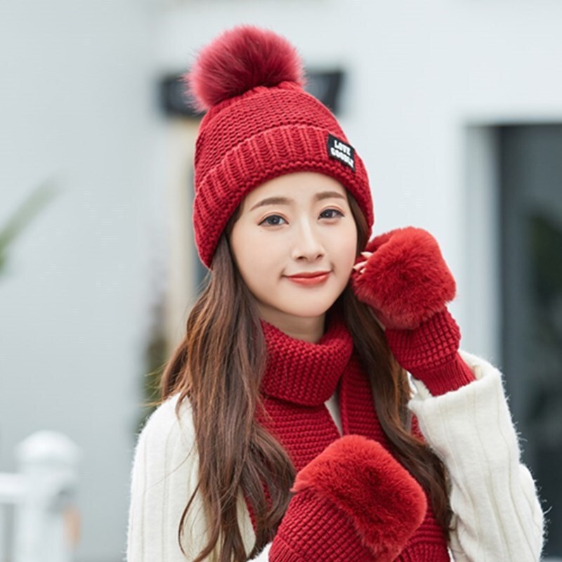 冬天女士毛线帽子围巾手套三件套秋冬季