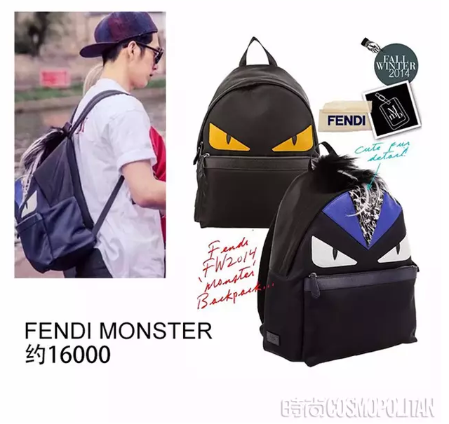Fendi 芬迪黑色双肩包书包小恶魔黄眼睛