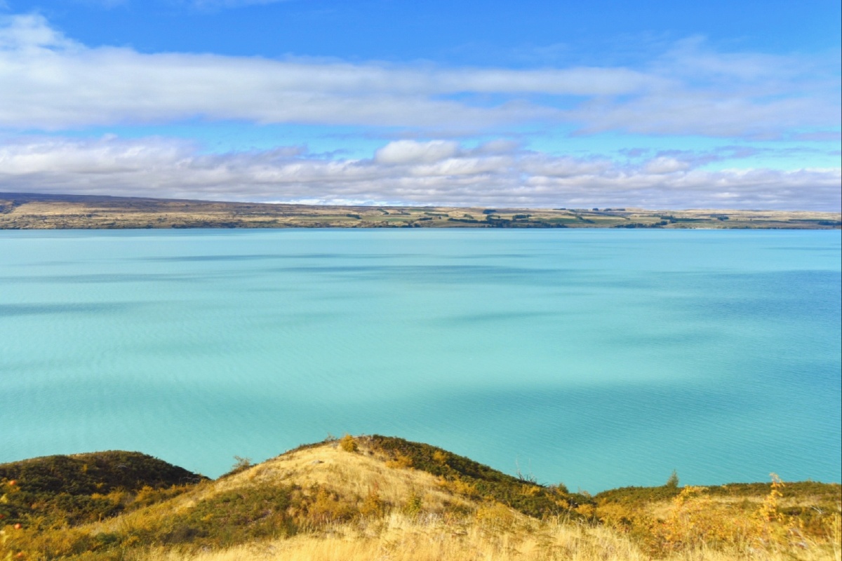 普卡基湖是一条冰河湖,湖水就像天蓝的