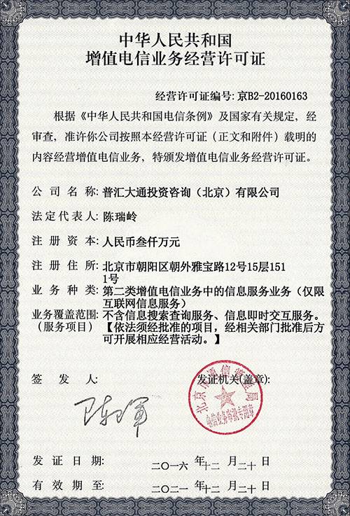 北京ICP证样本-中企百通|互联网许可证、通信资质办理专家