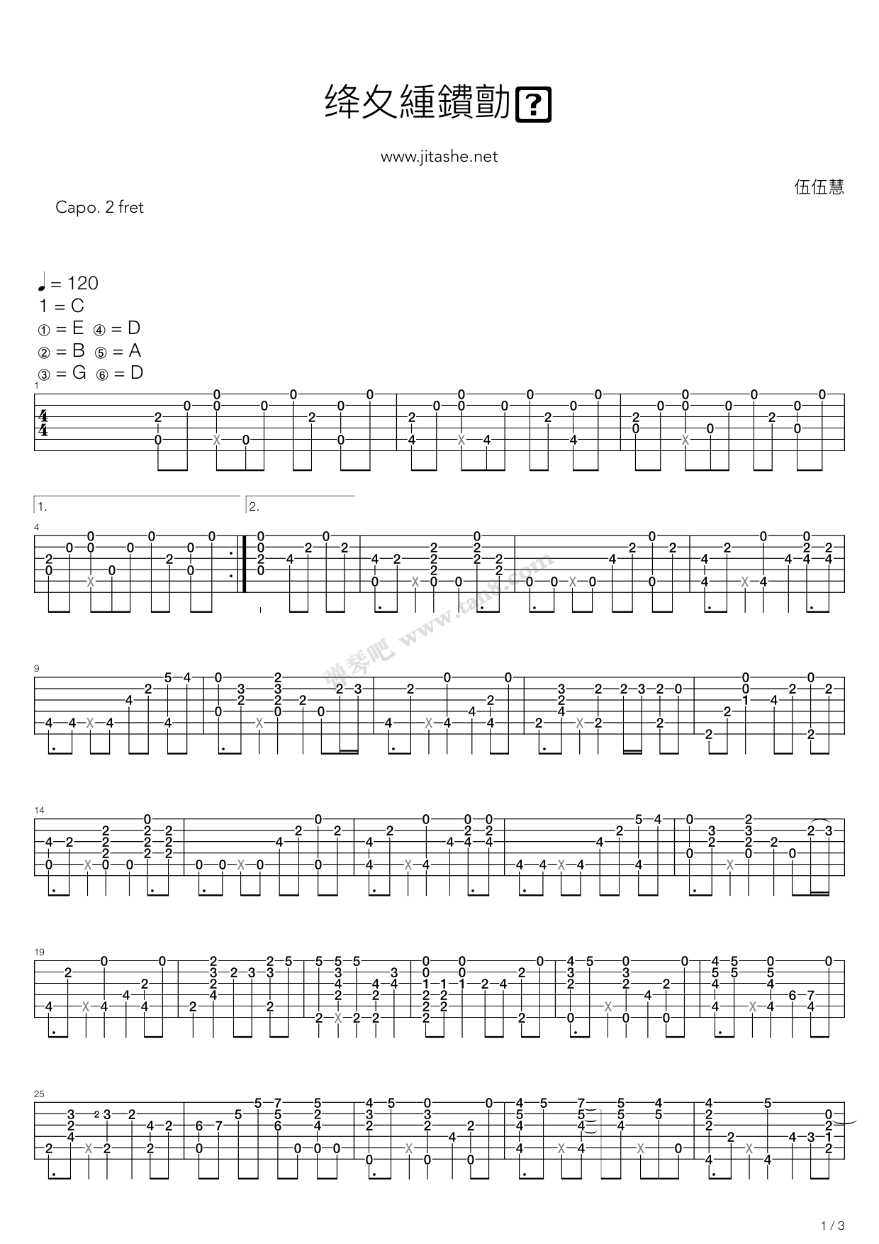 《等待的风》,伍伍慧(六线谱 调六线吉他谱-