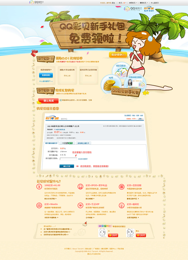 QQ彩贝欢乐钟活动 100彩贝等于1元可购买
