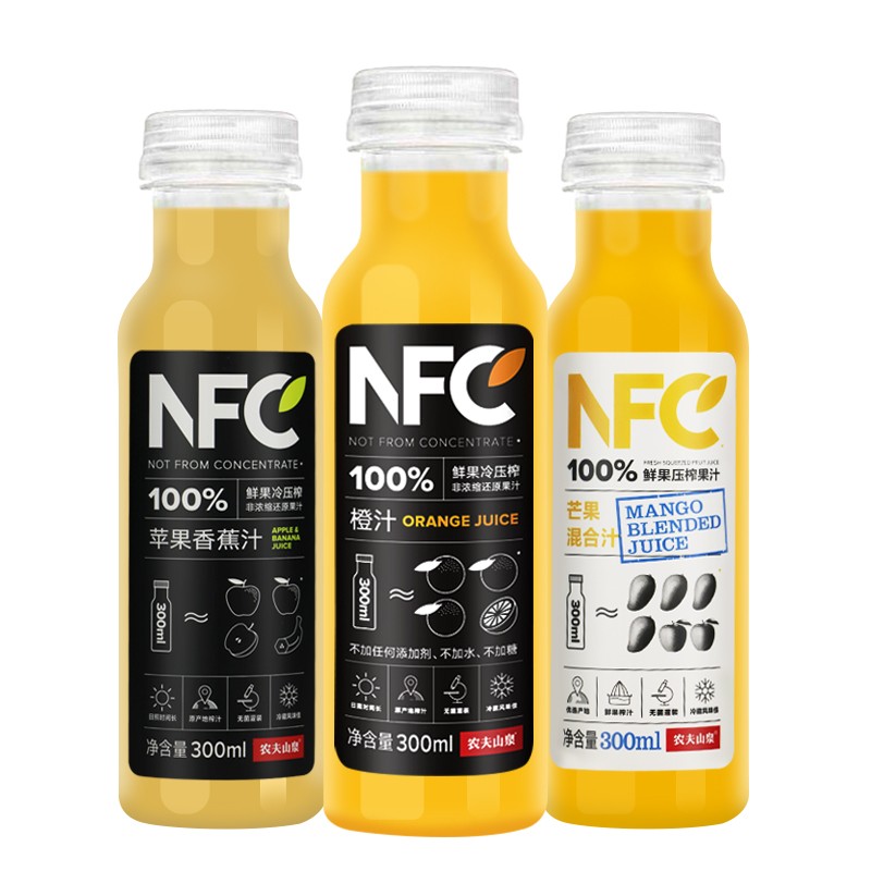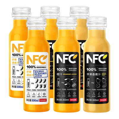 农夫山泉100%NFC果汁芒果混合汁纯果蔬汁轻断食饮料口味300ml