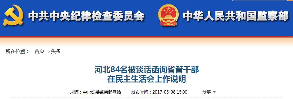 河北84名被谈话函询省管干部在民主生活会