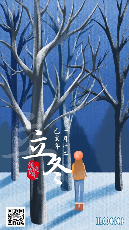 立冬中国传统节日节气神兽插画手机海报