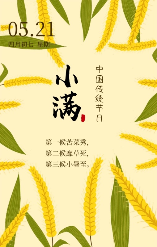 小满中国传统节日黄色简约手机海报