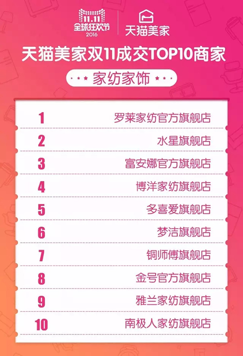答:  一、天猫全球家年华 随着国内家装市场需求越来越旺盛,随着国人消费水平的升级、对个性化要求愈来愈高,近日,天猫美家联合家装、家具、家居、家电等行业启动了年