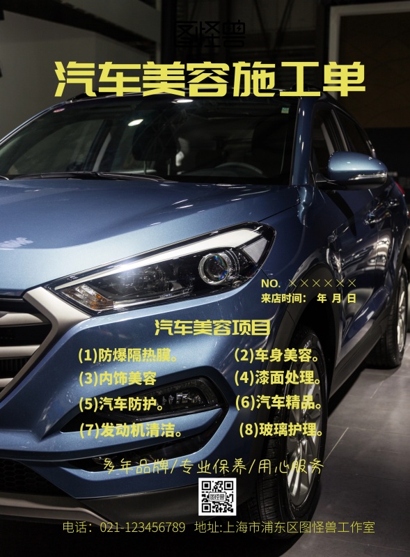 汽车美容施工单海报