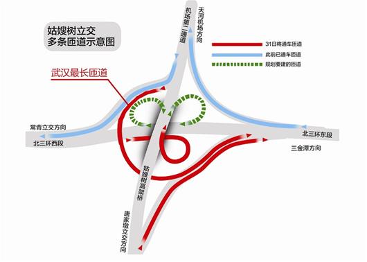 武汉姑嫂树立交三匝道通车 成市区最长