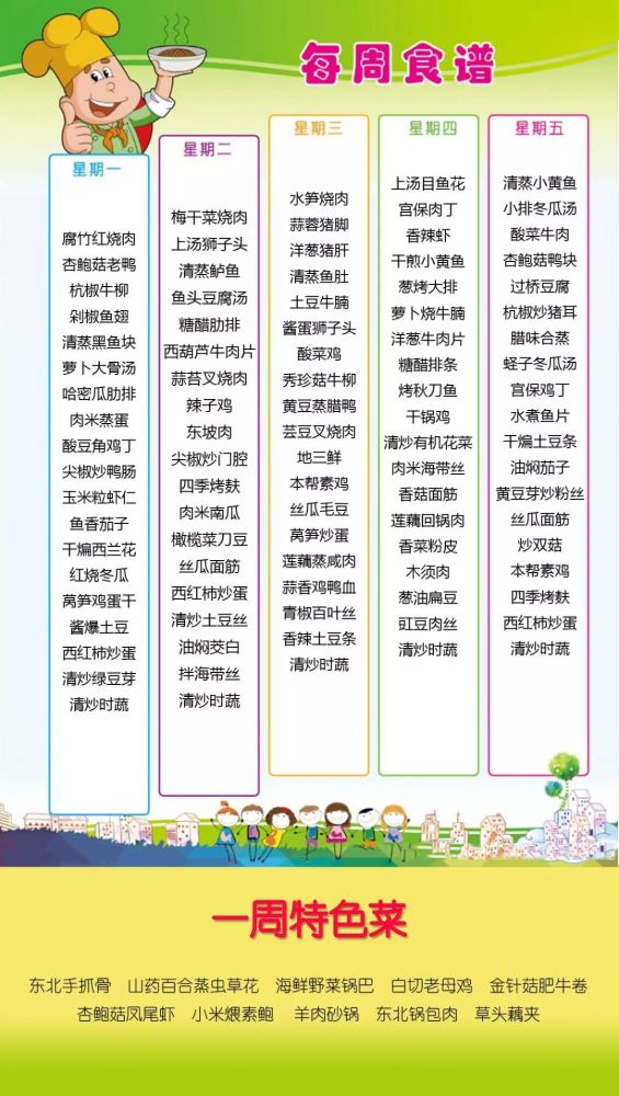 天门市江汉学校2018年秋季学期食堂第7周菜谱