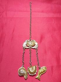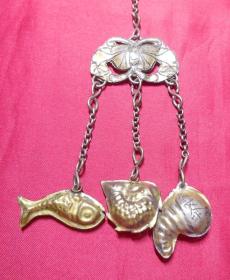老银鎏金蝴蝶中承吊鱼化龙鲤鱼海螺链串