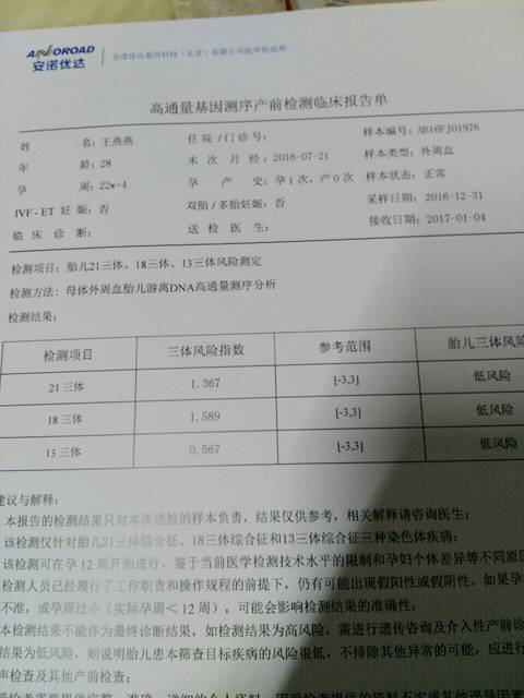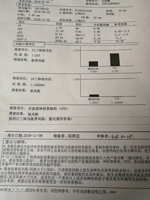 医院做了唐筛21三体临界风险,18周做的无