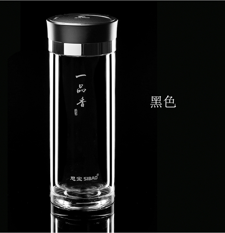 思宝玻璃杯茶水分离泡茶杯墨晶男士双层高