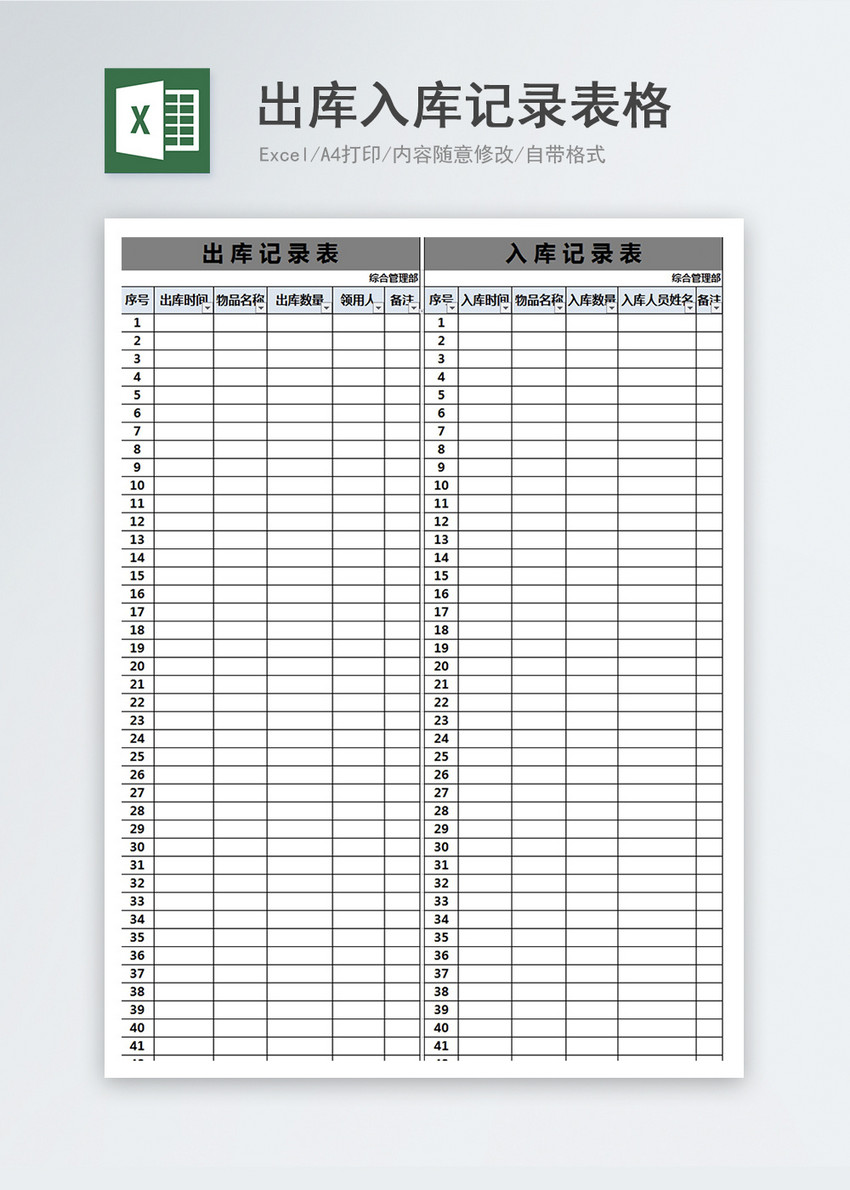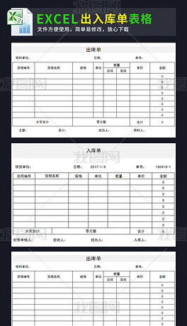 出库入库记录表格excel模板模板免费下载_xlsx格式_324像素_编号27001789